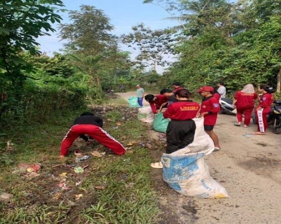 Mahasiswa KKM UNIBA dan Warga Desa Kebon Cau Gelar Gotong Royong Bersih-Bersih Lingkungan